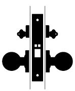 Classroom Lock •Latchbolt retracted by knob/lever from either side unless outside is locked by key. •Unlocked from outside by key. •Inside knob/lever always free for immediate exit. •Auxiliary latch deadlocks Latchbolt when door is closed. |